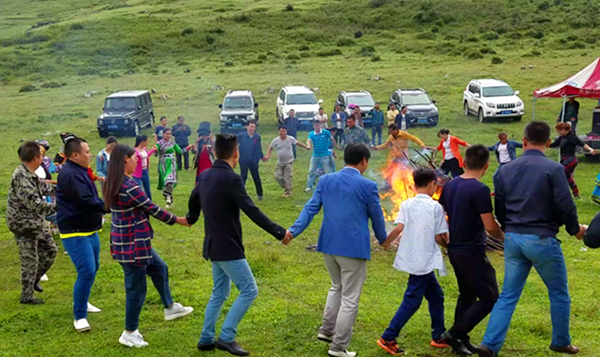 高高的山崗上,青青的草坪間,熱情而豪邁的開元人,伴隨著優(yōu)揚(yáng)的音樂旋律,圍著熊熊燃燒的篝火,一起跳起了藏族的歡慶舞……