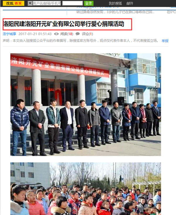 弘揚社會正能量 愛心事業(yè)美名揚——洛陽開元礦業(yè)集團(tuán)善舉引起國內(nèi)各大媒體高度關(guān)注